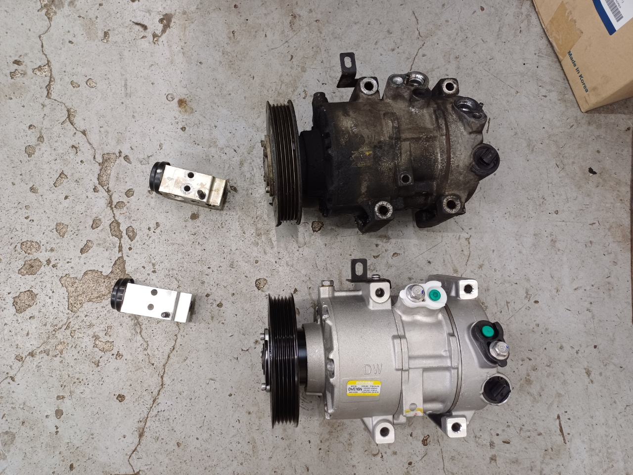 투싼 자동차인데 에어컨이 작동되지 않아서 수리하러 오셨습니다. 에어컨이 작동되지 않는 고장 부위를 찾아보니 에어컨 콤프레셔가 작동되지 않고 있네요. 고장난 콤프레셔와 팽창밸브 새걸로 교환했으며, 수리 완료 후 에어컨 시원하게 잘 나와서 출고 했습니다.
