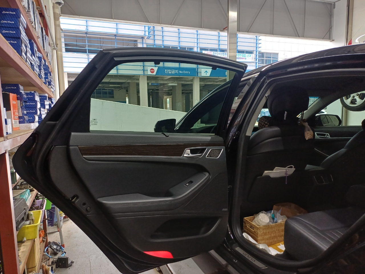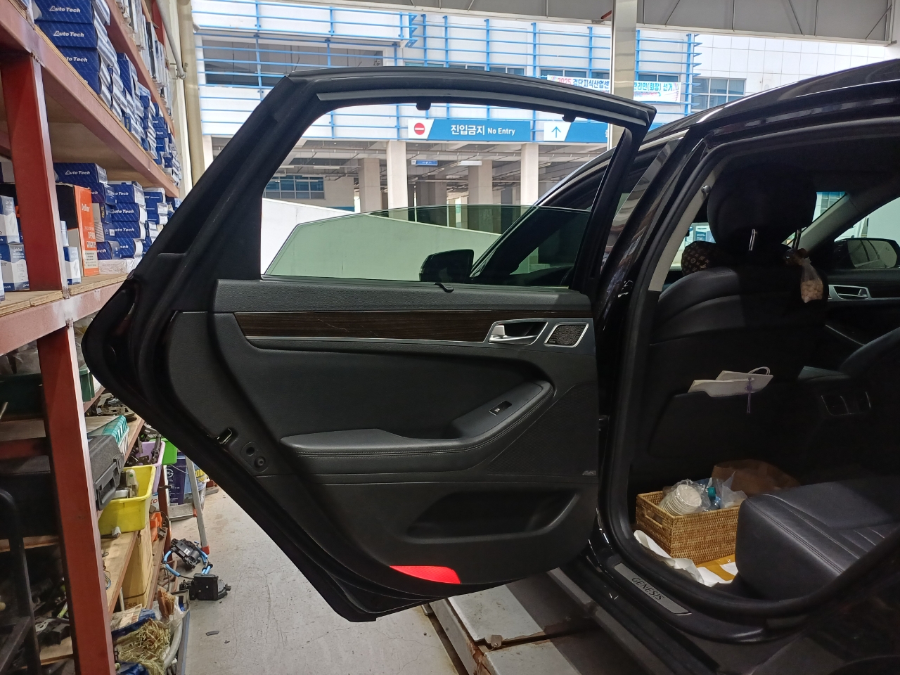 제네시스 g80 자동차인데 뒤에 차 문이 잠겨서 안에서와 밖에서 모두 열리지 않는 고장이 생겨서 전화 상담후에 멀리서 수리하러