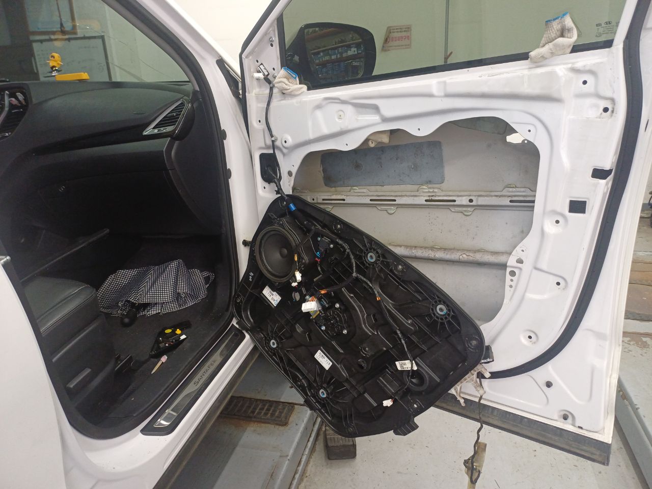 싼타페 자동차인데 조수석 차 문이 닫힌 상태에서 안쪽과 바깥쪽에서 차 문이 안 열리는 고장이 생겨서 전화 상담후에 멀리서 수리