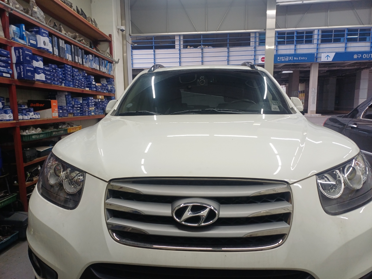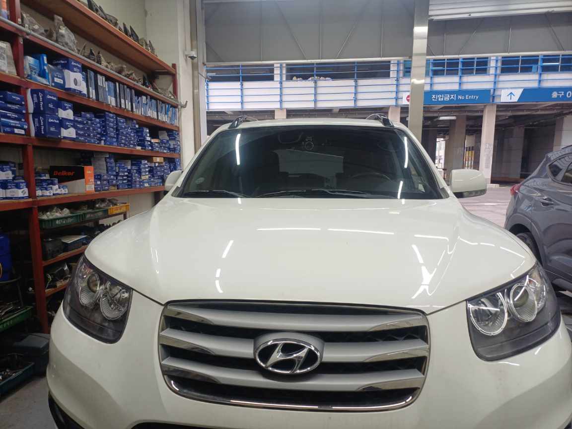 싼타페cm 자동차인데 운전석 백밀러가 접히지 않고 드르륵 득득 모터 돌아가는 소리만 들리는 고장으로 수리하러 오셨네요.